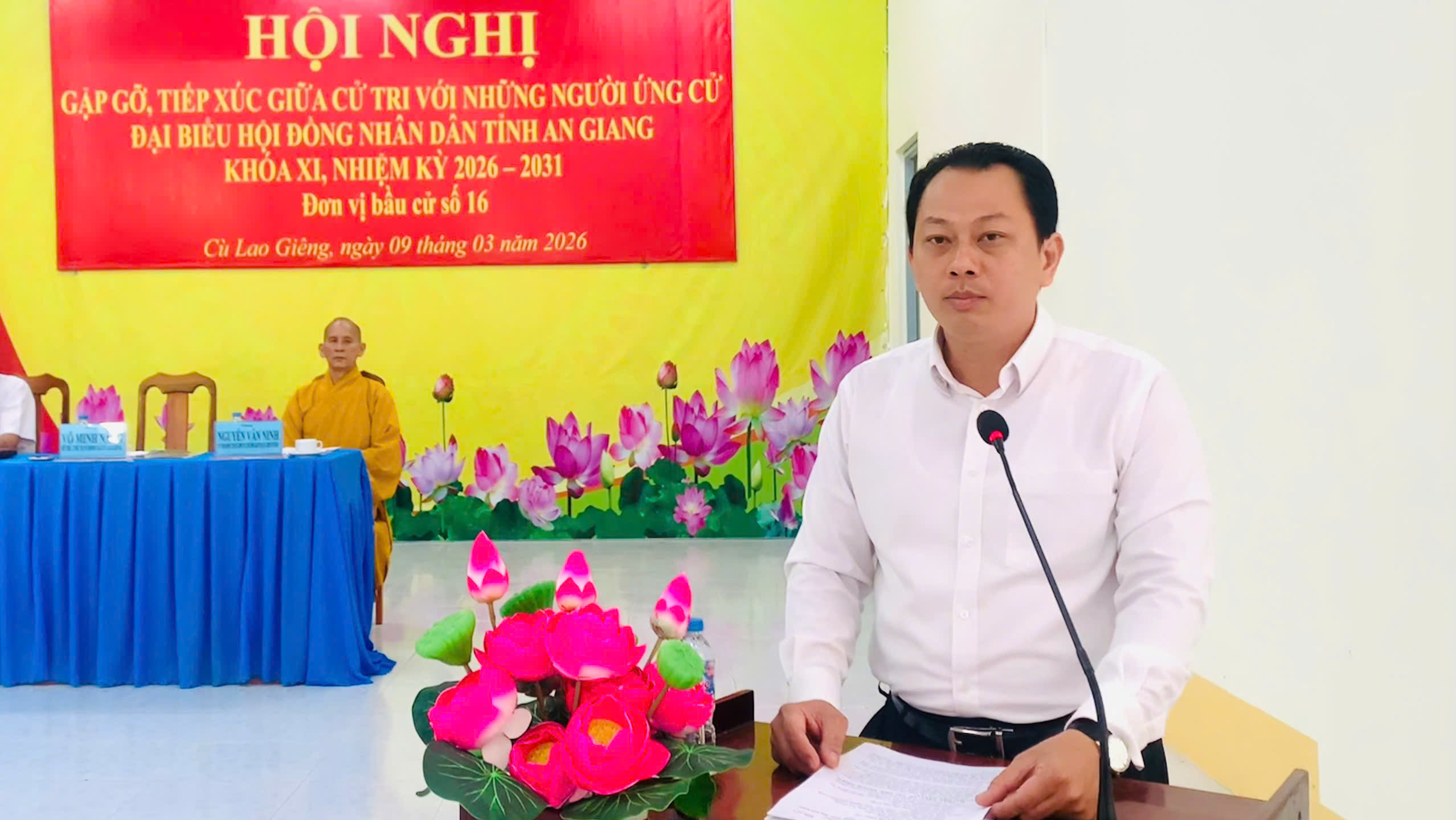 Ông Võ Minh Nâng, Bí thư Đảng ủy, Chủ tịch HĐND xã Cù Lao Giêng (An Giang) cam kết nếu được cử tri tín nhiệm bầu làm Đại biểu Hội đồng nhân dân tỉnh An Giang khóa XI, nhiệm kỳ 2026 - 2031, ông sẽ tiếp tục nỗ lực hết mình, thực hiện đầy đủ trách nhiệm của người đại biểu nhân dân; chịu sự giám sát của cử tri và nhân dân; xứng đáng với niềm tin mà cử tri đã giao phó. Theo Nghị quyết, tỉnh An Giang có 27 đơn vị bầu cử, với 143 người ứng cử để bầu ra 85 đại biểu Hội đồng nhân dân (HĐND) tỉnh An Giang, khóa XI, nhiệm kỳ 2026 - 2031. Trong đó, ông Võ Minh Nâng (46 tuổi, Bí thư Đảng ủy xã, Chủ tịch HĐND xã Cù Lao Giêng) là ứng cử viên tại đơn vị bầu cử số 16 (gồm các xã: Long Điền và xã Cù Lao Giêng). Đơn vị này có 5 ứng cử viên, bầu 3 đại biểu HĐND tỉnh. Nhận thức về vai trò, trách nhiệm của đại biểu dân cử Trong chương trình hành động của mình, ông Võ Minh Nâng nhận thức rõ HĐND là cơ quan đại diện cho ý chí, nguyện vọng và quyền làm chủ của Nhân dân. Đại biểu HĐND có trách nhiệm thay mặt Nhân dân quyết định các vấn đề quan trọng của địa phương và giám sát việc thực hiện các chủ trương, chính sách, pháp luật. Ông xác định: Là người ứng cử đại biểu HĐND tỉnh phải thường xuyên giữ mối liên hệ chặt chẽ với cử tri theo đúng quy định của pháp luật; chủ động tiếp xúc, đối thoại, lắng nghe với tinh thần cầu thị, tôn trọng và trách nhiệm; tiếp thu, tổng hợp và phản ánh trung thực, đầy đủ các ý kiến, kiến nghị chính đáng của Nhân dân đến cơ quan có thẩm quyền xem xét, giải quyết; đồng thời theo dõi, giám sát việc trả lời và thực hiện, bảo đảm quyền và lợi ích hợp pháp, chính đáng của cử tri. Tham gia đầy đủ, nghiêm túc và có trách nhiệm trong các kỳ họp HĐND; chủ động nghiên cứu kỹ tài liệu, nắm vững nội dung, bám sát tình hình thực tiễn của địa phương; tích cực thảo luận, phát biểu ý kiến thẳng thắn, khách quan, khoa học, đặt lợi ích chung của Nhân dân và sự phát triển bền vững của địa phương lên trên hết, góp phần nâng cao chất lượng các Nghị quyết được ban hành. Thực hiện tốt chức năng giám sát theo quy định; theo dõi chặt chẽ việc triển khai thực hiện các nghị quyết của HĐND và các chính sách, pháp luật trên địa bàn; bảo đảm được tổ chức thực hiện nghiêm túc, đồng bộ và hiệu quả. Qua hoạt động giám sát, kịp thời phát hiện những hạn chế, bất cập, kiến nghị giải pháp khắc phục, góp phần nâng cao hiệu lực, hiệu quả quản lý nhà nước và bảo vệ quyền, lợi ích hợp pháp, chính đáng của Nhân dân. Trong quá trình công tác với nhiều vị trí khác nhau như chuyên viên Thanh tra thành phố Long Xuyên (cũ), chuyên viên Phòng Tổ chức công chức, Sở Nội vụ Tỉnh An giang, Chánh Thanh tra Sở Nội vụ tỉnh An Giang, đặc biệt với vai trò Phó Chủ tịch Ủy ban nhân dân huyện Chợ Mới (trước khi sáp nhập), Bí thư Đảng ủy, Chủ tịch HĐND xã Cù Lao Giêng, ông luôn nêu cao tinh thần trách nhiệm, chủ động, sâu sát cơ sở và đã đạt được một số kết quả nổi bật sau: Tham mưu, phối hợp lãnh đạo tổ chức triển khai thực hiện hiệu quả các nghị quyết của Đảng ủy, Hội đồng nhân dân về phát triển kinh tế - xã hội, bảo đảm quốc phòng - an ninh; góp phần giữ vững ổn định chính trị, trật tự an toàn xã hội, từng bước nâng cao đời sống vật chất và tinh thần của Nhân dân; ban hành các Nghị quyết sát tình hình thực tiễn, có tính khả thi cao, đáp ứng yêu cầu phát triển của địa phương; thực hiện chính sách an sinh xã hội; cải cách hành chính và chuyển đổi số, từ đó góp phần nâng cao hiệu lực, hiệu quả quản lý nhà nước tại địa phương… Dù ở cương vị, vị trí nào, ông điều hoàn thành tốt và xuất sắc nhiệm vụ được giao. Ông vinh dự được Nhà nước trao tặng 3 bằng khen cấp Bộ, cấp Tỉnh. 5 nội dung trọng tâm Tại hội nghị gặp gỡ, tiếp xúc giữa cử tri với những người ứng cử Đại biểu HĐND tỉnh An Giang, khóa XI, nhiệm kỳ 2026 – 2031 tại xã Cù Lao Giêng vào ngày 9/3/2026, ông Võ Minh Nâng - Bí thư Đảng ủy, Chủ tịch HĐND xã và là ứng cử viên đại biểu HĐND tỉnh cam kết nếu được cử tri tín nhiệm bầu vào đại biểu HĐND tỉnh An Giang, ông hứa rằng sẽ nghiêm túc thực hiện 5 nội dung trọng tâm, cụ thể: Về giữ mối liên hệ chặt chẽ với cử tri và Nhân dân, ông cam kết thực hiện đầy đủ, nghiêm túc việc tiếp xúc cử tri trước và sau mỗi kỳ họp theo quy định; chủ động tham gia tiếp công dân định kỳ và đột xuất khi cần thiết; Dành thời gian gặp gỡ, đối thoại trực tiếp với Nhân dân tại các ấp để kịp thời nắm bắt tâm tư, nguyện vọng, những vấn đề phát sinh từ cơ sở; Lắng nghe, tiếp thu ý kiến phản ánh, kiến nghị của cử tri với tinh thần cầu thị, trách nhiệm; tổng hợp, phản ánh trung thực, đầy đủ đến Hội đồng nhân d