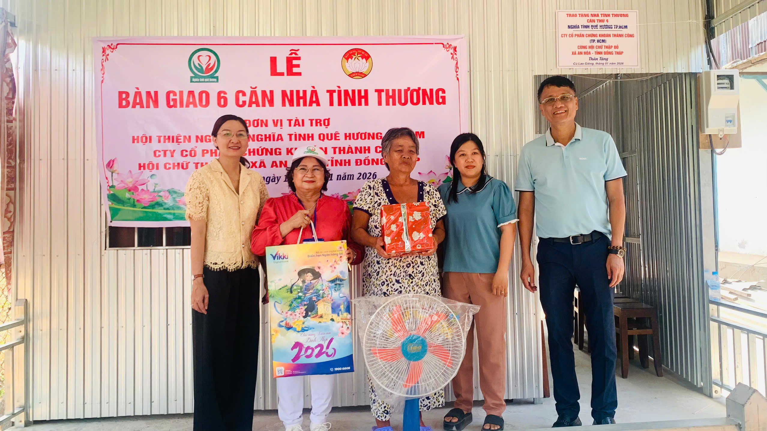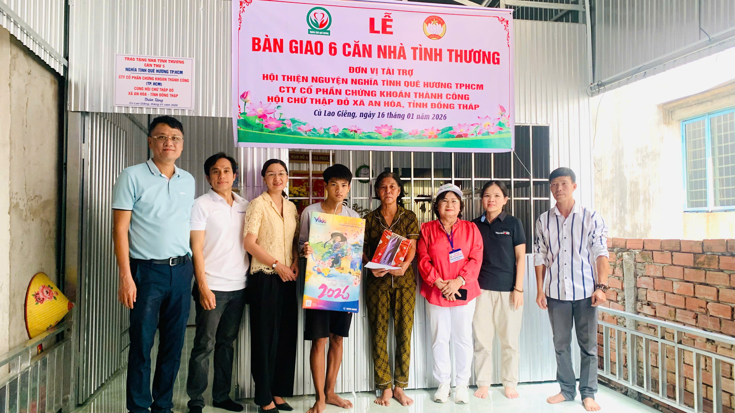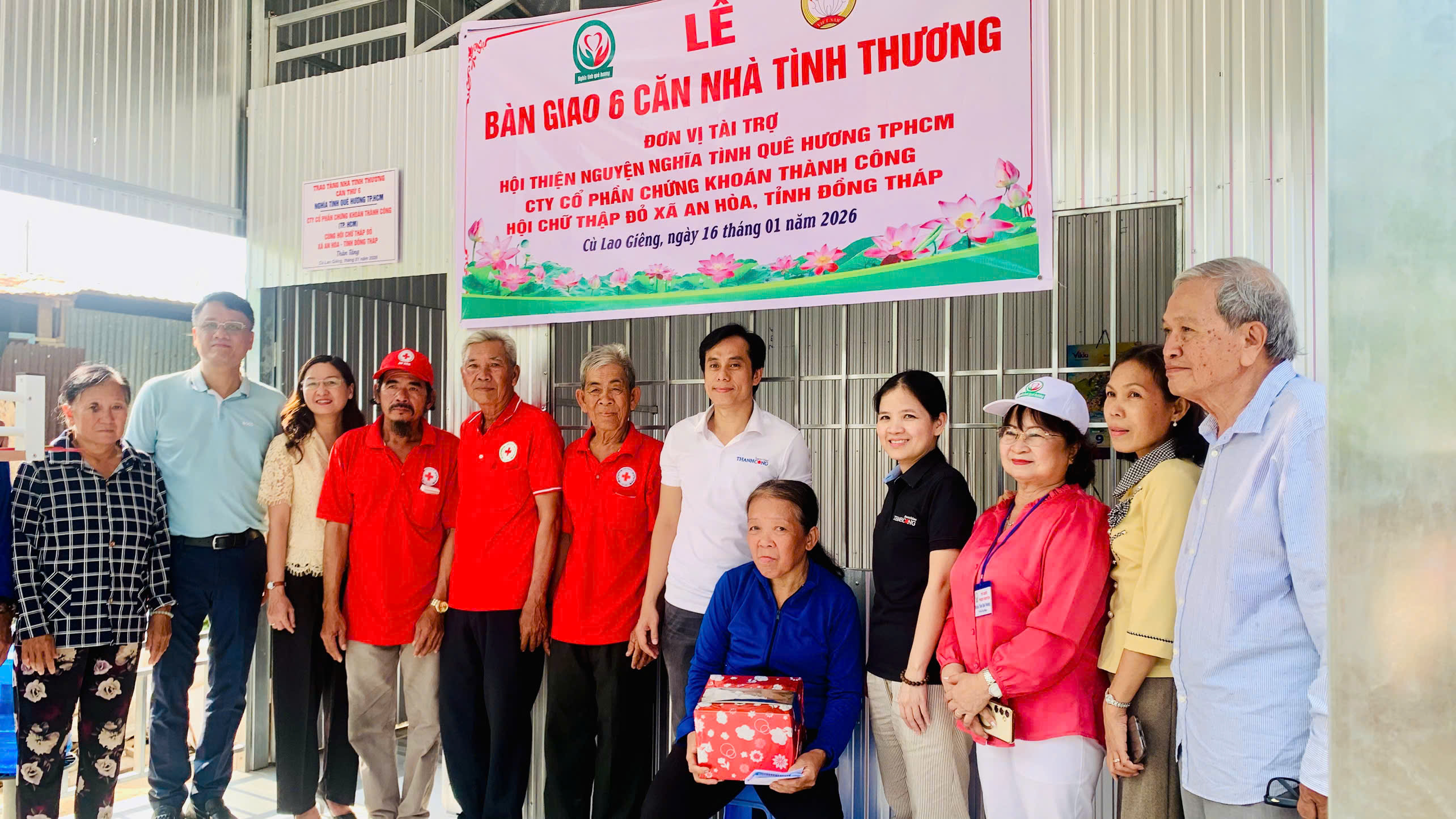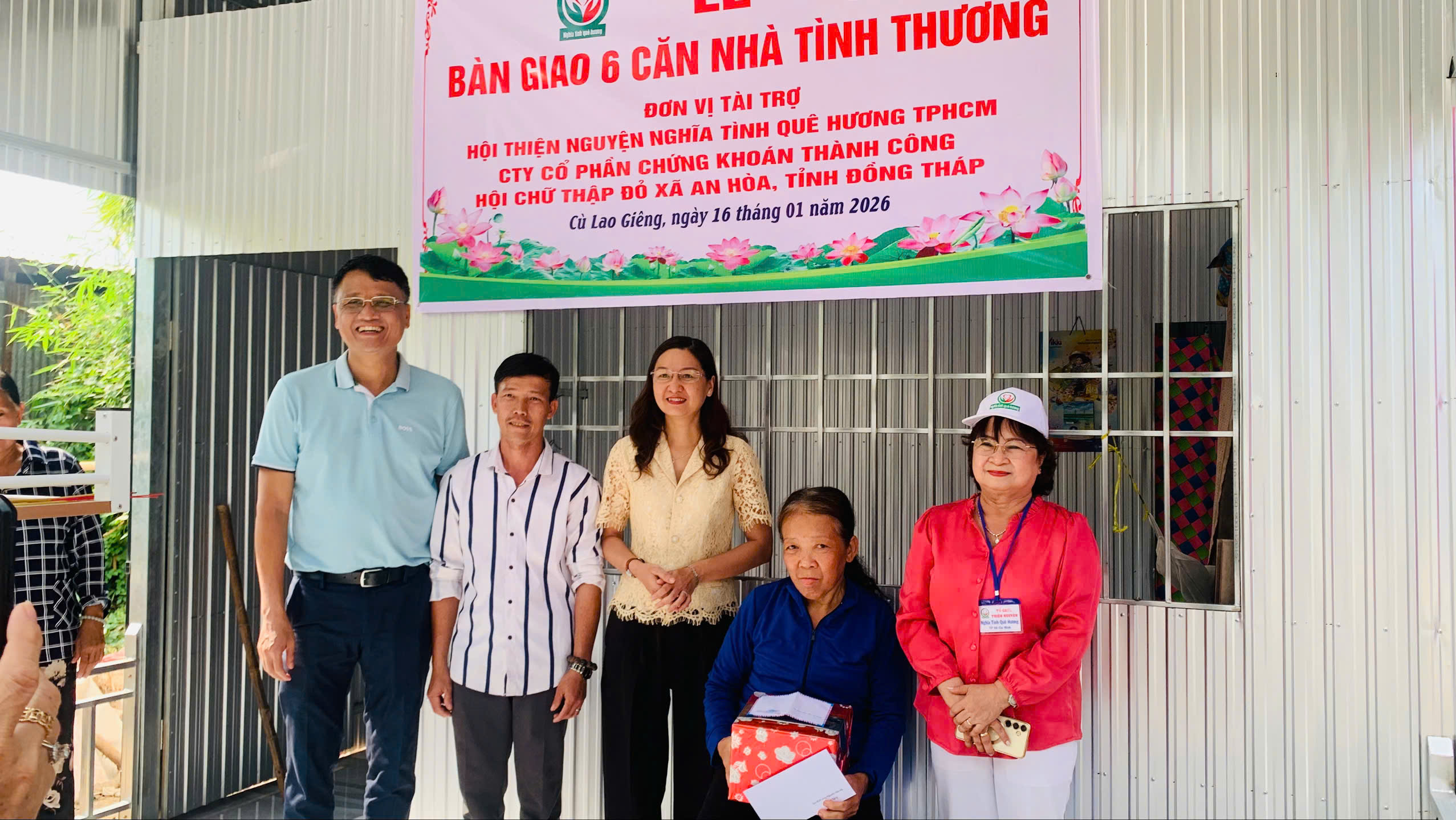 6 căn nhà bàn giao xây dựng có kết cấu mái lợp tôn, nền lát gạch bông và có nhà tiêu vệ sinh do Hội Chữ thập đỏ xã An Hoà, tỉnh Đồng Tháp thực hiện. Kinh phí thực hiện 6 căn nhà do Hội thiện nguyện Nghĩa tình quê hương (thành phố Hồ Chí Minh) kết nối Công ty Cổ phần chứng khoán Thành Công hỗ trợ 120 triệu đồng (mỗi căn 20 triệu đồng), phần còn lại do gia đình và ban ấp vận động đối ứng.