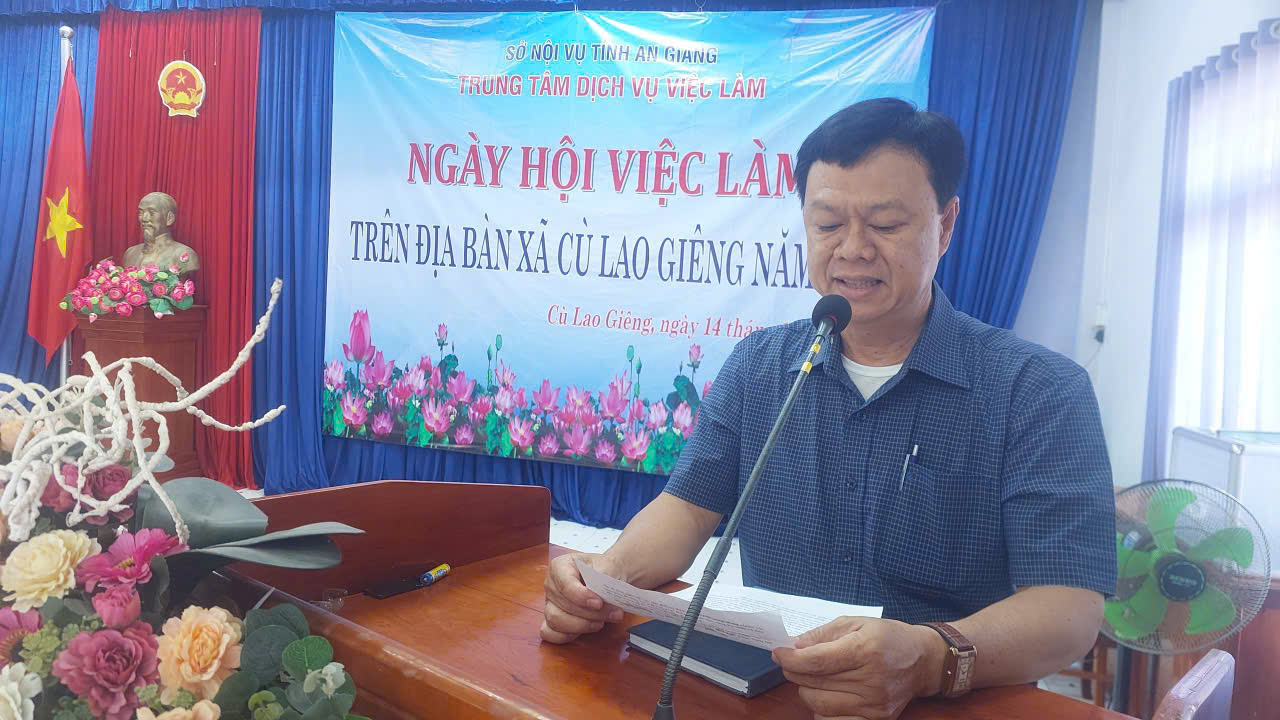 Sáng ngày 14-11-2025, UBND xã Cù Lao Giêng phối hợp với Trung tâm dịch vụ việc làm tỉnh An Giang tổ chức Ngày hội việc làm cho các em học sinh, sinh viên mới ra trường và người lao động năm 2025 trên địa bàn xã Cù Lao Giêng. Tham dự có ông Võ Phương Thanh- Phó chủ tịch UBND xã- Giám đốc Trung tâm phục vụ hành chính công xã Cù Lao Giêng.