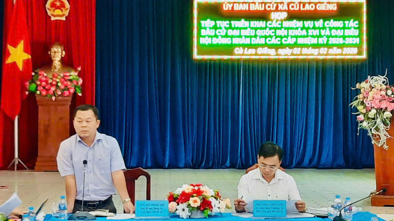 Chiều ngày 02/02/2026, Ủy ban bầu cử (UBBC) xã Cù Lao Giêng tổ chức cuộc Họp tiếp tục triển khai các nhiệm vụ về công tác bầu cử đại biểu Quốc hội khóa XVI và đại biểu Hội đồng nhân dân các cấp, nhiệm kỳ 2026 – 2031. Ông Đỗ Minh Trí - Phó Bí thư Đảng ủy, Chủ tịch UBND xã, Chủ tịch Ủy ban bầu cử xã, chủ trì cuộc họp, cùng dự có ông Võ Phương Thanh - Ủy viên BTV Đảng ủy, Phó Chủ tịch UBND xã, Phó Chủ tịch Ủy ban bầu cử, ông Hoa Thế Vinh, Ủy viên Ban thường vụ Đảng ủy, Phó Chủ tịch Hội đồng nhân dân xã - Phó Chủ tịch UBBC, Bà Huỳnh Thị Hiền - Ủy viên BCH Đảng ủy, Trưởng phòng Văn hóa - Xã hội, Thư ký Ủy ban bầu cử, các Tổ trưởng, Tổ phó của 05 Tổ giúp việc; Trưởng 06 Ban bầu cử; 33 Tổ trưởng Tổ bầu cử và các đồng chí Trưởng ấp trên địa bàn xã.