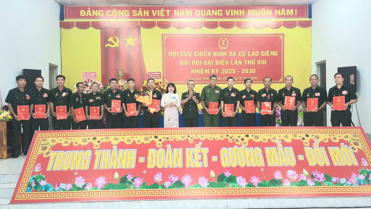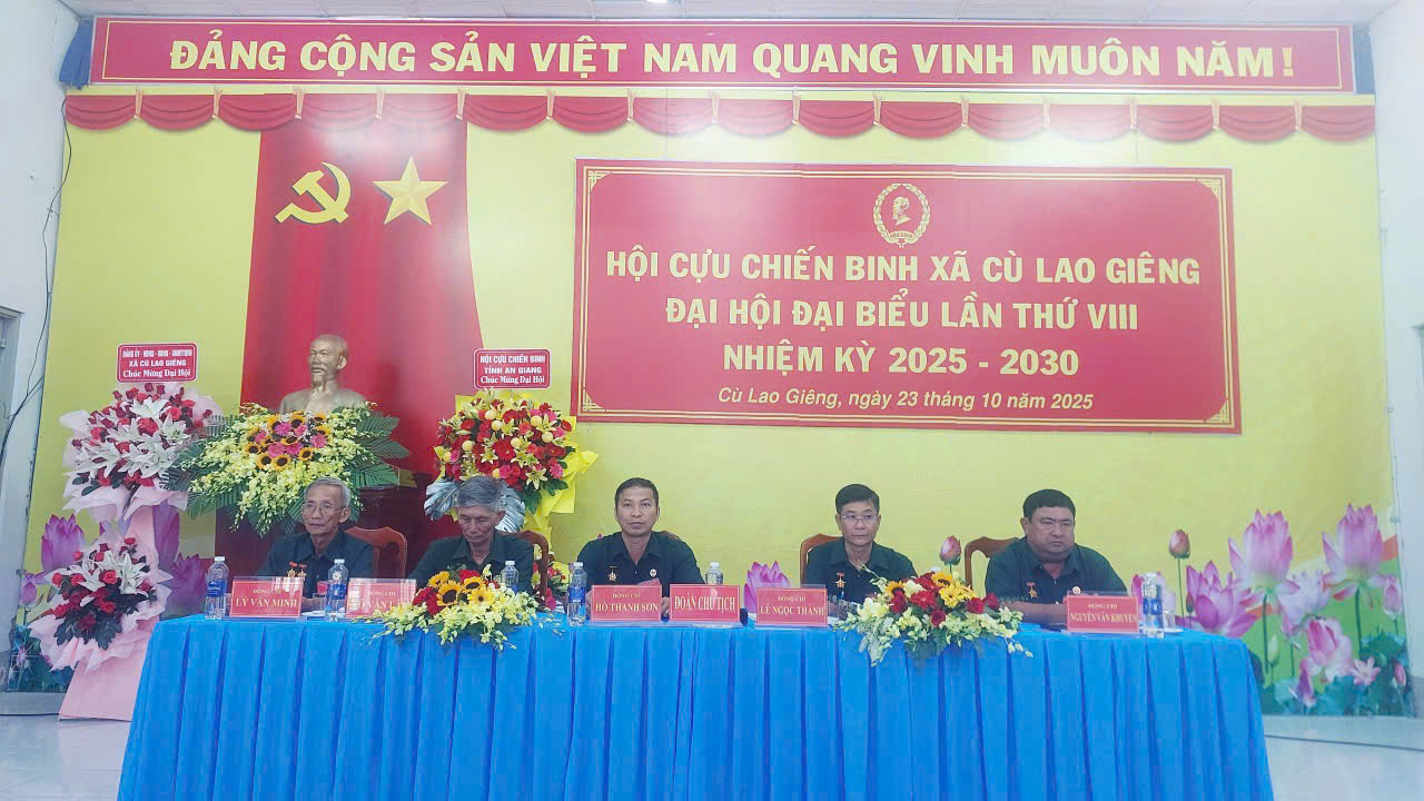 Sáng ngày 23-10-2025, Hội cựu chiến binh xã Cù Lao Giêng tổ chức Đại hội đại biểu lần thứ VIII nhiệm kỳ 2025-2030. Đến tham dự và chỉ đạo hội nghị có ông Bùi Thanh Châu- Phó chủ tịch Hội cựu chiến binh tỉnh An Giang, đồng chí Trần Thị Ngọc Hà- Phó Bí thư Thường trực Đảng ủy xã Cù Lao Giêng, tỉnh An Giang, ông Hoa Thế Vinh- Phó chủ tịch HĐND xã Cù Lao Giêng cùng 80 Hội viên cựu chiến binh tiêu biểu về tham dự Đại hội.