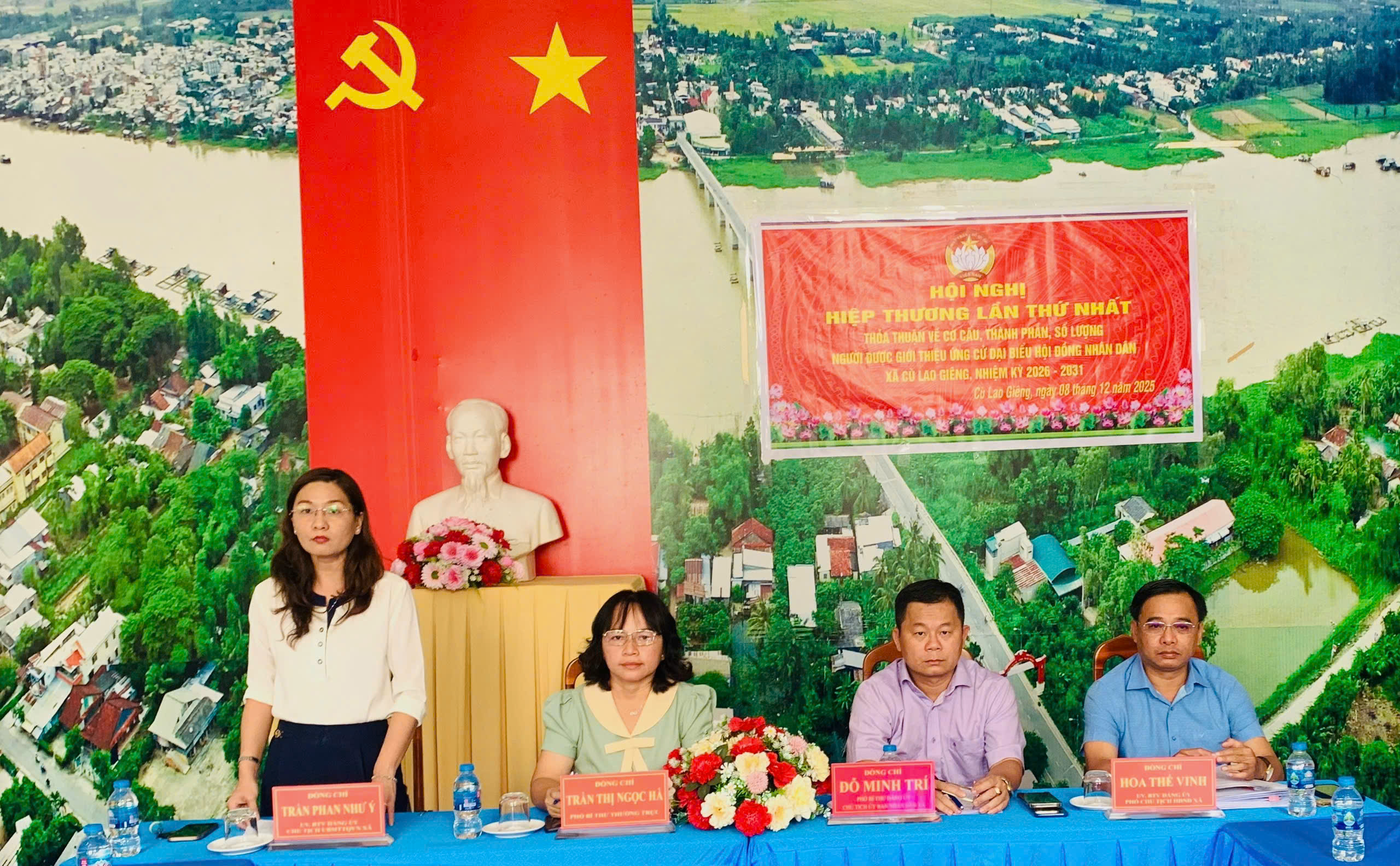 Chiều ngày 8/12/2025, Ban Thường trực Ủy ban MTTQ Việt Nam xã Cù Lao Giêng tổ chức Hội nghị hiệp thương lần thứ nhất về bầu cử đại biểu Hội đồng nhân dân (HĐND) xã, nhiệm kỳ 2026 - 2031. Tham dự có đồng chí Trần Thị Ngọc Hà - Phó Bí thư Thường trực Đảng ủy xã; đồng chí Đỗ Minh Trí –Phó Bí thư Đảng ủy, Chủ tịch UBND xã; ông Hoa Thế Vinh - Phó Chủ tịch HĐND xã. Bà Trần Phan Như Ý - Chủ tịch Ủy ban MTTQ Việt Nam xã chủ trì hội nghị.