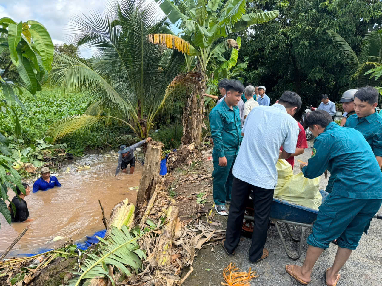 Đoàn đã kiểm tra thực tế 04 đoạn xung yếu và cống đập có nguy cơ nước dâng cao, có thể sạt lở mái taluy ở các tuyến đê bao. Theo ghi nhận các tuyến đê bao, cống đập và các khu vực xung yếu trên địa bàn xã, được lãnh đạo địa phương quan tâm chỉ đạo gia cố ngay theo phương châm 04 tại chổ, tại các điểm sụt lún, có nguy cơ để đảm bảo an toàn sản xuất, vườn cây ăn trái cho người dân.