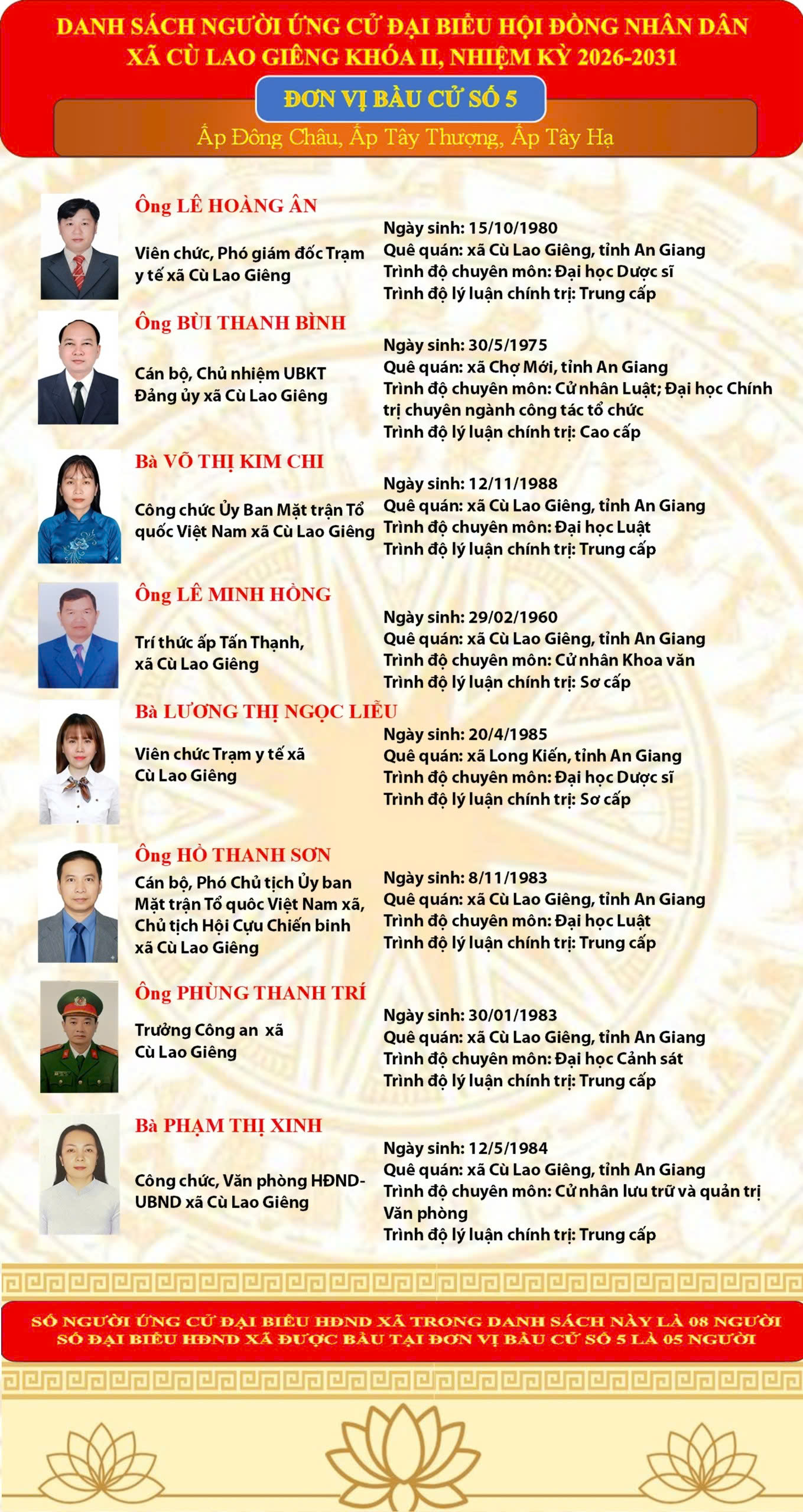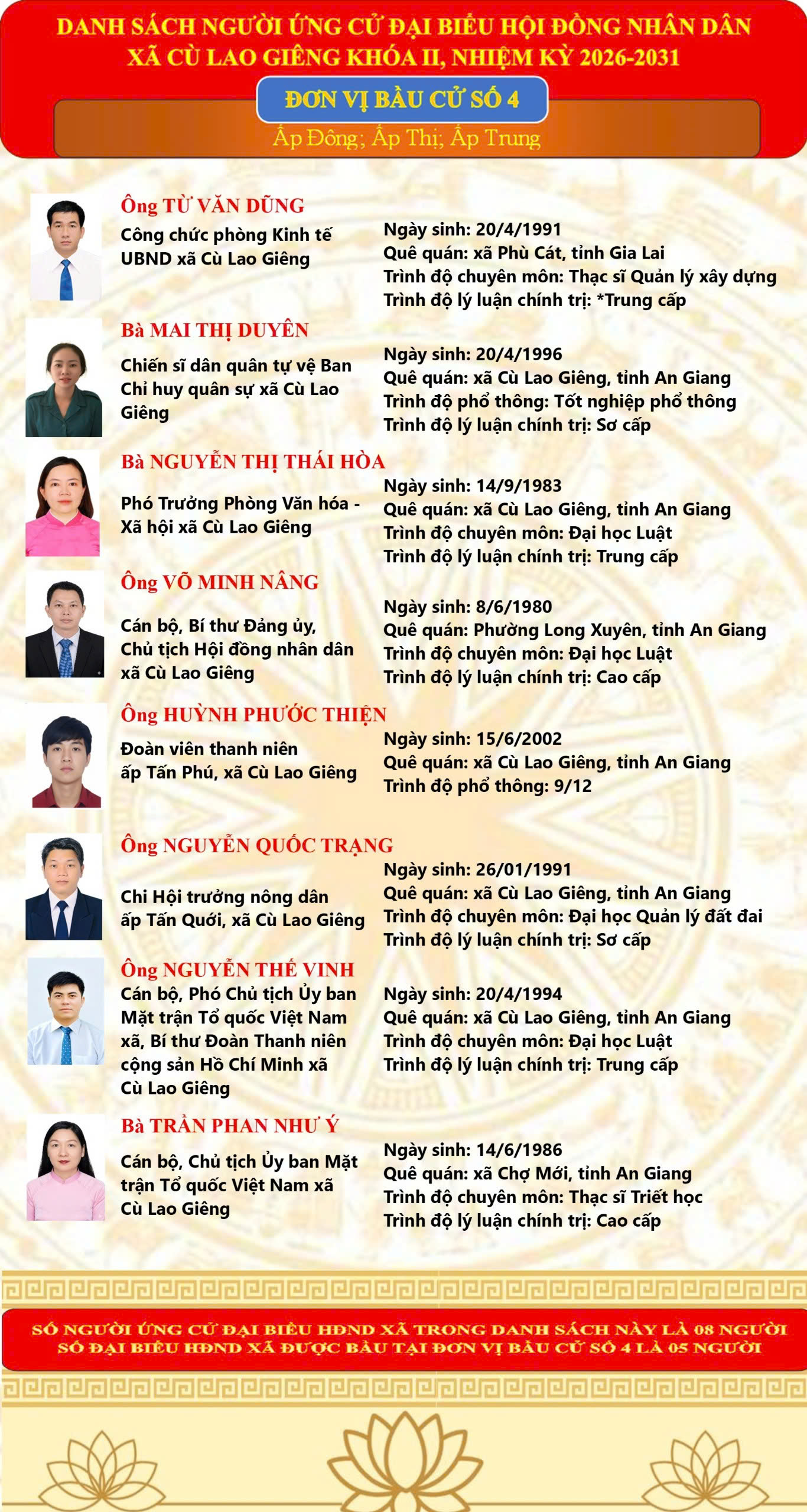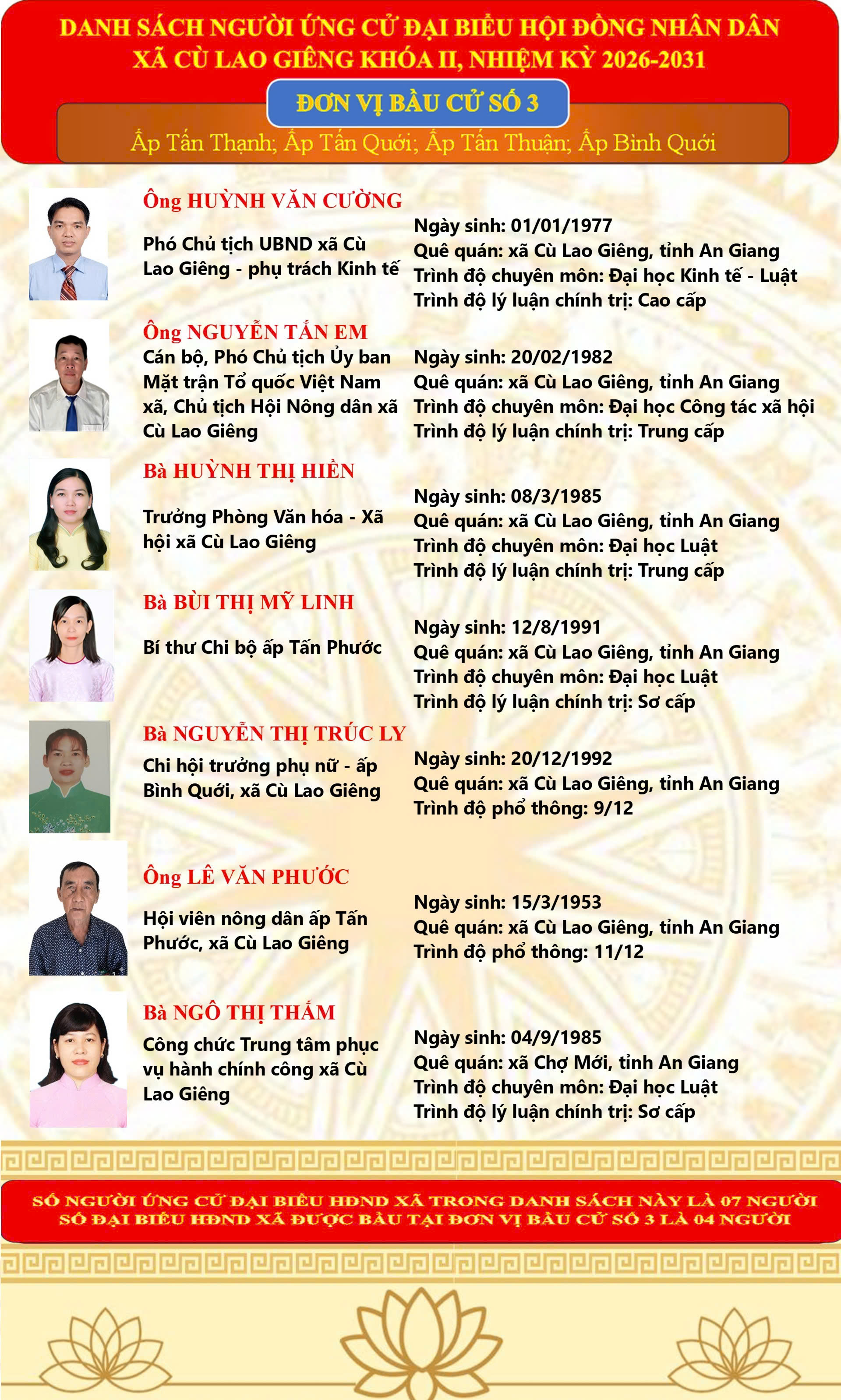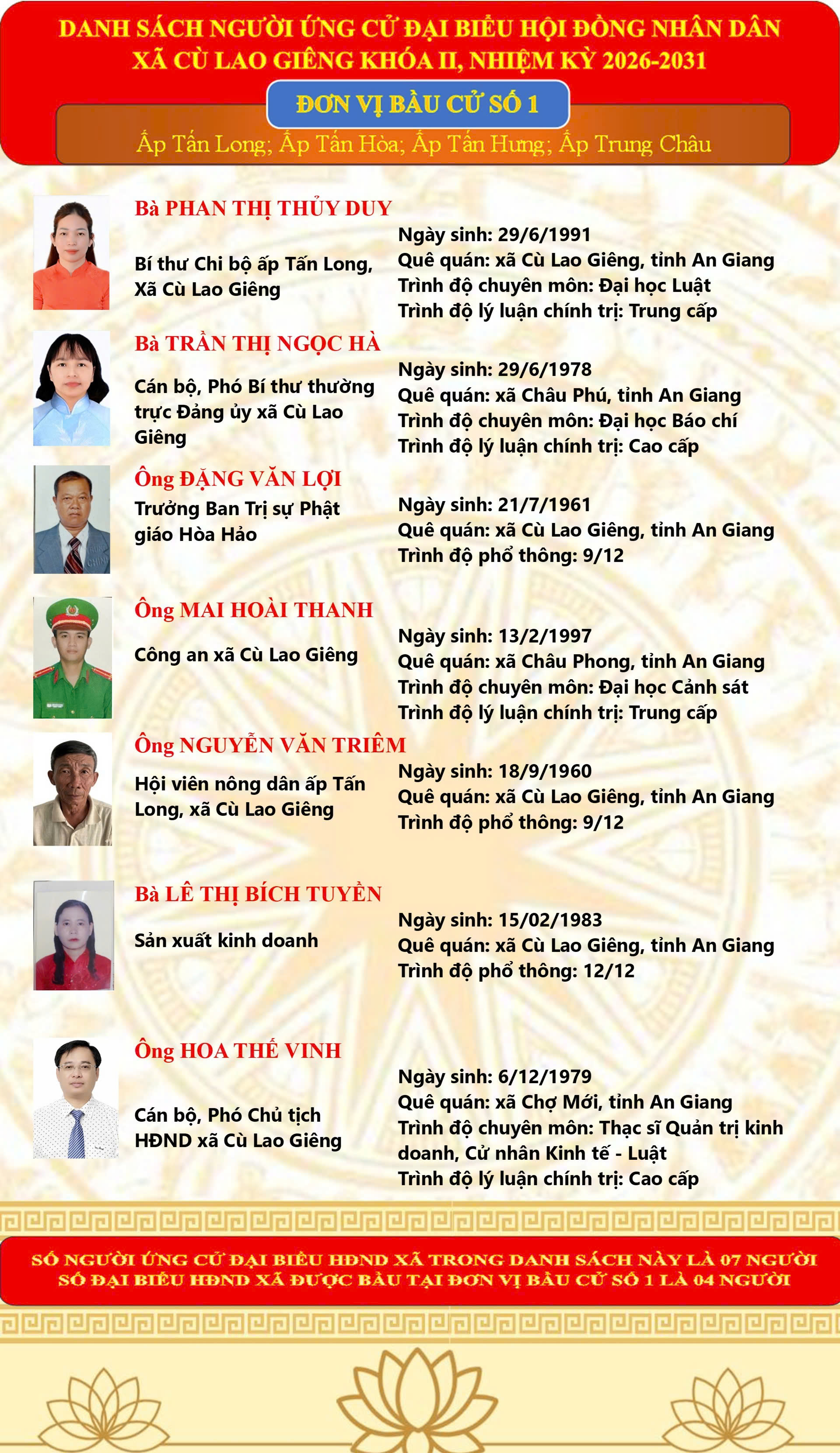 Danh Sách chính thức 46 người ứng cử đại biểu HĐND xã Cù Lao Giêng khóa II, nhiệm kỳ 2026-2031 theo từng đơn vị bầu cử 04/03/2026 Read more