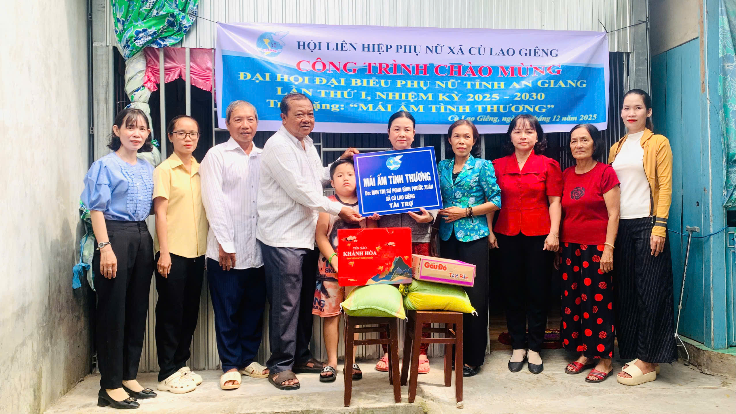 Ngày 3/12/2025, thiết thực chào mừng Đai hội đại biểu Phụ nữ tỉnh An Giang lần I, nhiệm kỳ 2025 - 2030, Hội LHPN xã Cù Lao Giêng tổ chức trao 3 căn nhà Mái ấm tình thương cho hộ Hùynh Thị Cẩm Nhung (ấp Đông), hộ Trần Tuyết Nhung (ấp Bình Quới) và hộ Phan Thị Hồng (ấp Tấn Phú) thuộc phụ nữ nghèo, khó khăn về nhà ở trên địa bàn xã. Đồng chí
